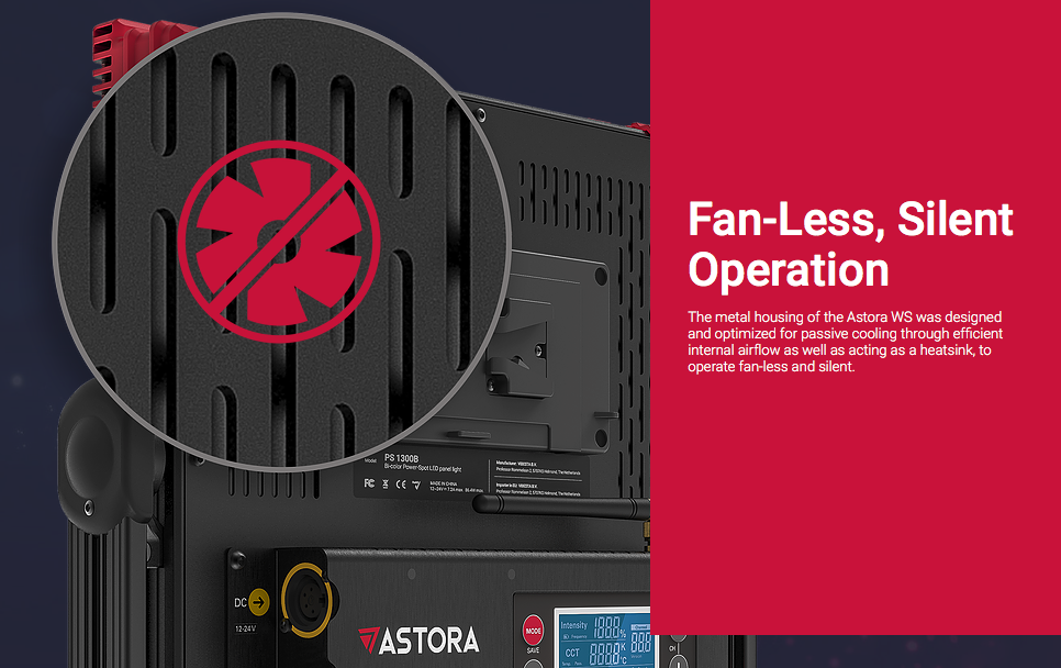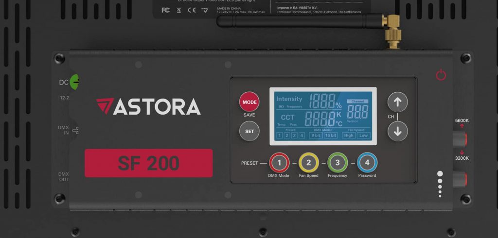 The Astora PS is the brightest in the range, also available in daylight only or bi-colour. The daylight version can output up to 16,629 lux at 1m. It is rated at 86.4W so you can use regular V-mount batteries to power the light. It has a wide 30-degree beam angle