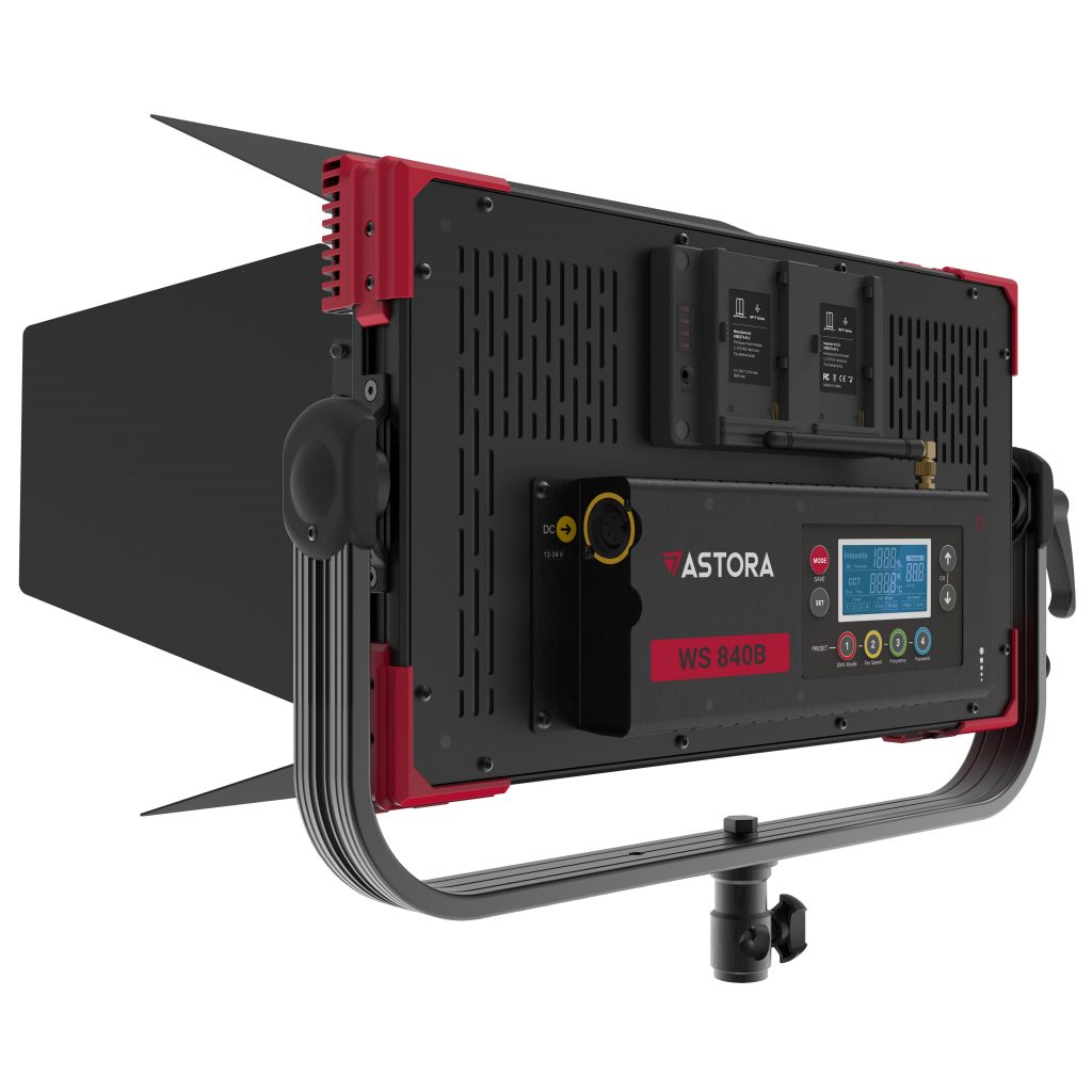 The Astora WS is the most portable light in the range with a 16:9 ratio and can output up to 7381 lux at 1m. It has a 50-degree beam angle. The light is available in either Daylight (WS 840D) or Bi-C0lour (WS 840B). To power the light, it uses NP-F style batteries.