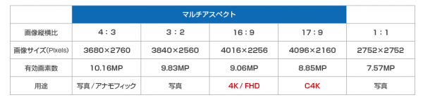 According to Alan “There’s some deep misunderstanding here. The ‘multi-aspect-ratio’ claim does not come from elastic photo-sties – it can only be from the use of several different shapes within the singly-shaped sensor. Given the dimensions of the sensor, true DCI is impossible. Ask Panasonic for an explanation, not me.”