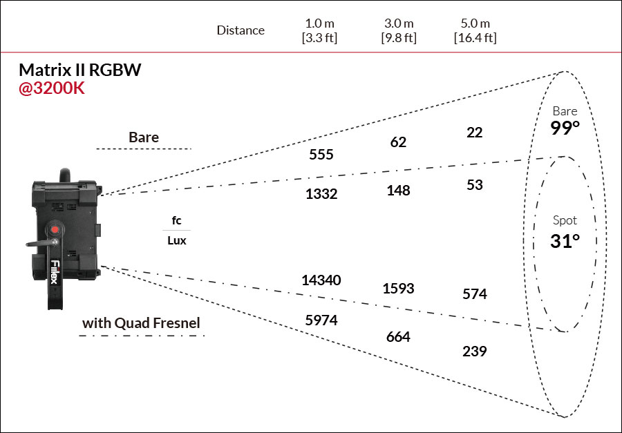 The Matrix II RGBW is white balance tunable between 2800-6500K. If you don’t need full-colour RGB, you can opt for the Matrix II Tunable White that is tunable from 2,800-10,000K.