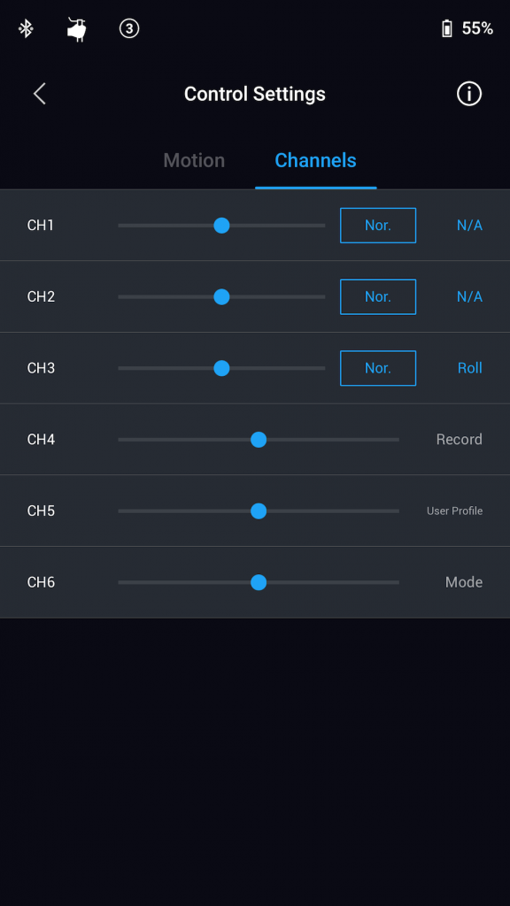 In the app under Control Settings, I disabled Ch.1 and Ch.2 controls on the joystick and set Ch.3 for ROLL (originally mapped as PAN). With USER3 selected and the gimbal in flashlight mode when I push the joystick left or right it spins the camera for the Roll 360 move. This effect can also be performed to give a little tension to the scene with a dutch angle. With the gimbal upright, the range is restricted and the roll will stop about a 1/4 of the way.