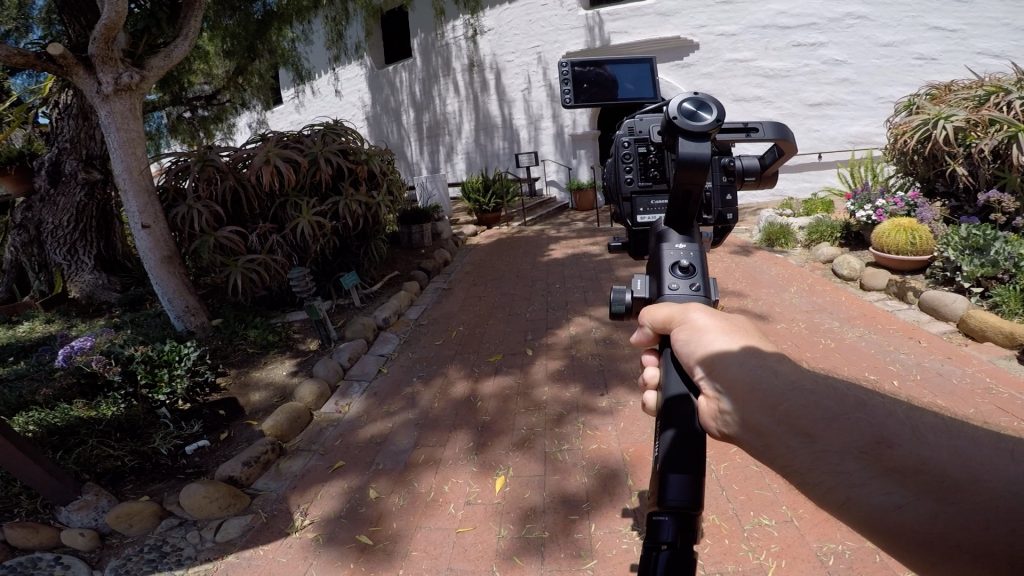 Underslung isn’t possible with a monitor attached. The Ronin-S with the C200B worked surprisingly pretty well. I didn’t have any issues other than being heavy and hard to shoot with for the 1.5 hours I spent at the Mission. I also didn’t get any vibration or strange movement. The motors on this gimbal are strong. I shot everything at 24p so you can see the movement and flaws of the motion. I have to say it all looks pretty good with such a load on the gimbal.
