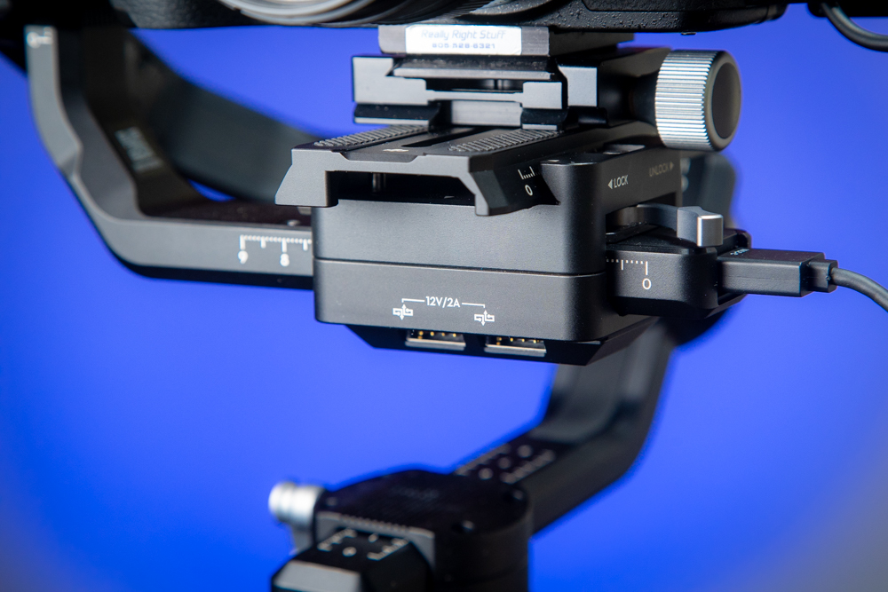 To mount the camera to the Ronin-S, DJI uses the Manfrotto style quick release plate. I don’t use this system, therefore, a better option for me is adding a small Arca/Swiss clamp to the Manfrotto style plate like this one. It’s lightweight and clamps my cameras on fast without having to change the QR plates just for gimbal use. I can go from tripod to gimbal quickly.