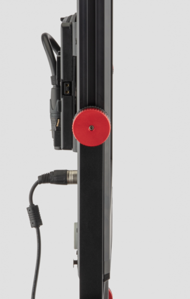 Traditionally RGBW lights have required a lot of power, but the Timpani only draws 120W. The fixture has a 4-pin XLR input, and a power supply is included. A V-mount battery plate comes attached to the rear of the fixture.
