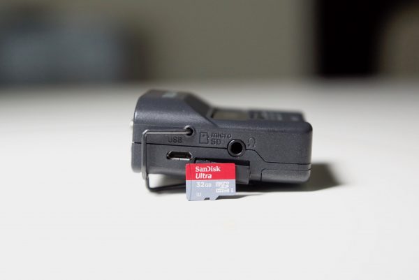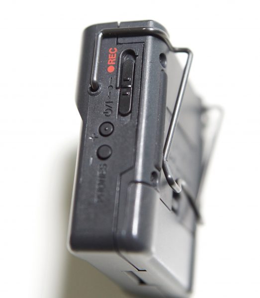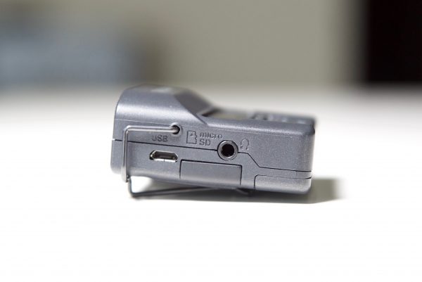 A single recording switch uses a sliding mechanism which has been designed to prevent the unit from accidentally turning off or having the recording stop. There is also a hold function that prevents recording from being stopped by accidental contact with a button. I do wish that Tascam would have made some sort of smartphone app for making changes, monitoring and controlling the DR-10CS. That way you could check it from time to time to see that everything is working correctly. It would also make it a lot easier to stop/start recordings, as when it’s mounted on a belt the record switch is hard to get to.