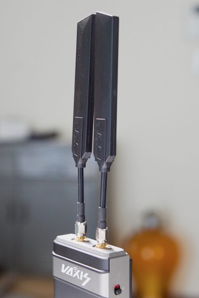 The Thor transmitter uses two “Sword” antennas, and the receiver uses three antennas. The antennas look more like propellers from a drone than the type used on most other wireless devices. The reason behind this design is that it helps the antennas mitigate dBi loss from reflections because the polarization does not change when the waves reflect off surfaces. The “sword” antennas have ceramic plates inside of them that according to Vaxis, increases the signal strength. This “Sword” design was pioneered by Vaxis and now many companies such as Movcam and Kinefinity are using it.