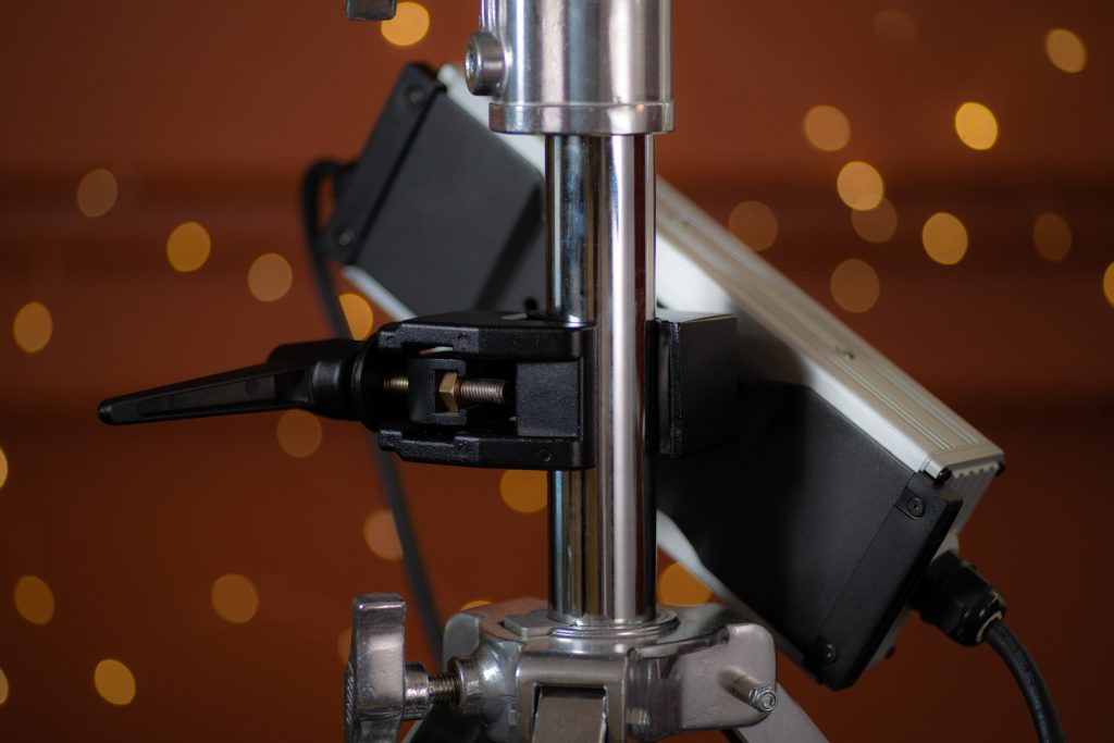 To keep it off the ground Fiilex includes a non-proprietary Mafer clamp to attach the ballast to a stand. This is good for a couple of reasons. Getting the 5.7 lbs/2.6kg ballast off the floor helps keep the clutter down, Makes moving the fixture easier and protects it from being kicked or bumped. When mounted on the lower portion of the stand it will add stability to the setup as well. I’m a big fan of getting the ballast off the floor.