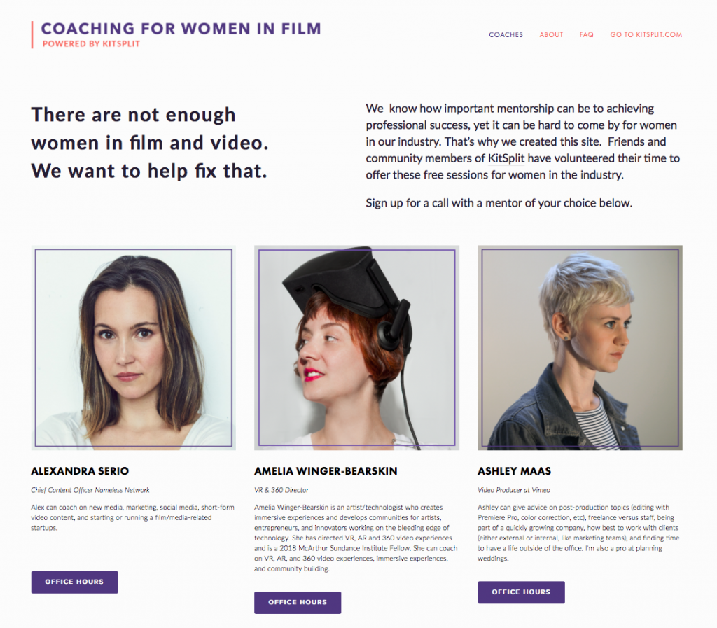 The program aims to connect industry leading professionals and KitSplit community members who have volunteered their time for a call with other women aiming to work their way up in the film industry.
