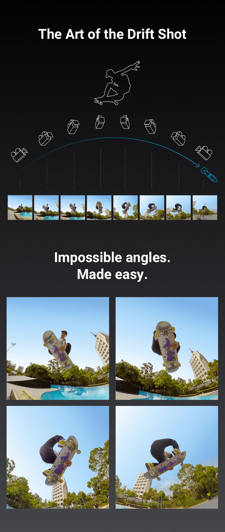 Combined with high-speed capture (3K at 100fps/4K at 50fps), you can get quite creative, especially with action sports. You do notice some stitching artefacts in these demo shots.