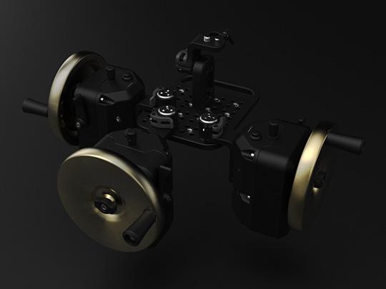Many wheel configurations for the MōVI currently use the 1A Tools Alpha wheels, which configured to the MoVI starts at $2,575 USD. The Alpha wheels can also be connected to other gimbals using Alpha Link S.Bus, or Futaba Com. There are also Brass wheels available for the Alpha wheels.