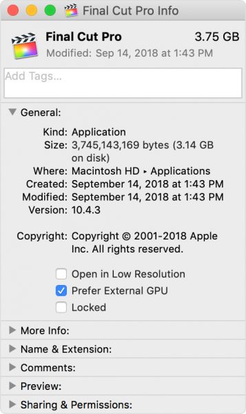 With the recent macOS Mojave update, Apple recently published a support document on using Final Cut Pro with external GPUs. Previously, you had to use a script to enable eGPU support.