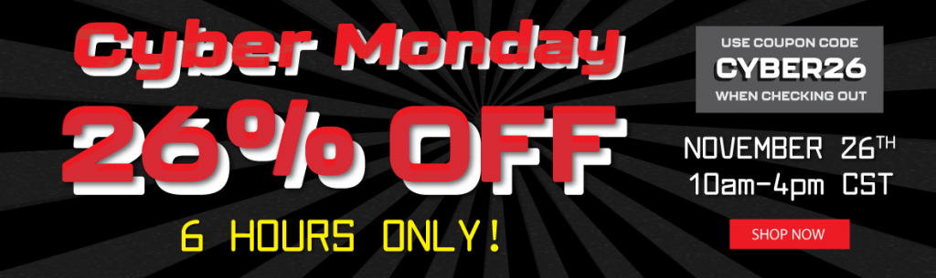 Use coupon code CYBER26 between 10am-4pm CST on the 26th November at https://store.zacuto.com/
