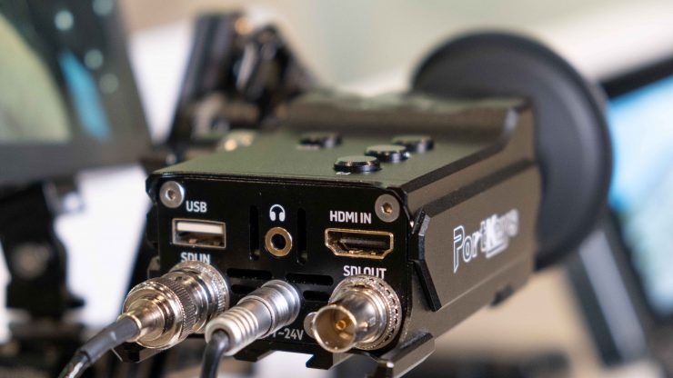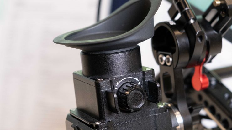 The build feels solid. To mount the EVF there’s an ARRI rosette on the side and a 1/4″- 20 tap on the bottom. There is also a raised area for a hardware mounting solution that will be available from Portkeys after release.