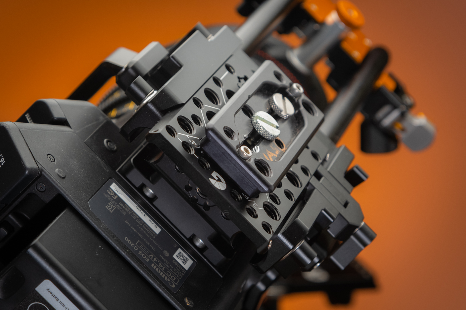 Bright Tangerine has designed the baseplate to be universal, so if you want to use a different camera system you can simply swap out the riser block to the correct one for that camera. There are currently riser blocks for the Sony Venice, URSA Mini Pro, C200/ C700 and more to come. This also means you don’t have to completely buy new parts if you rent or buy a different camera.