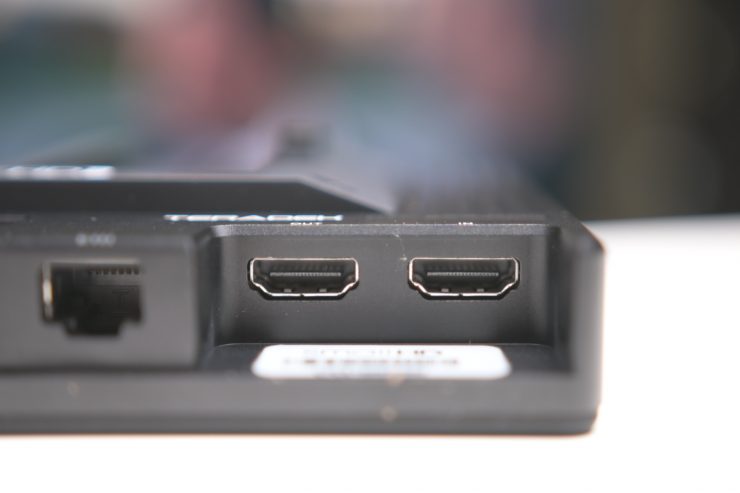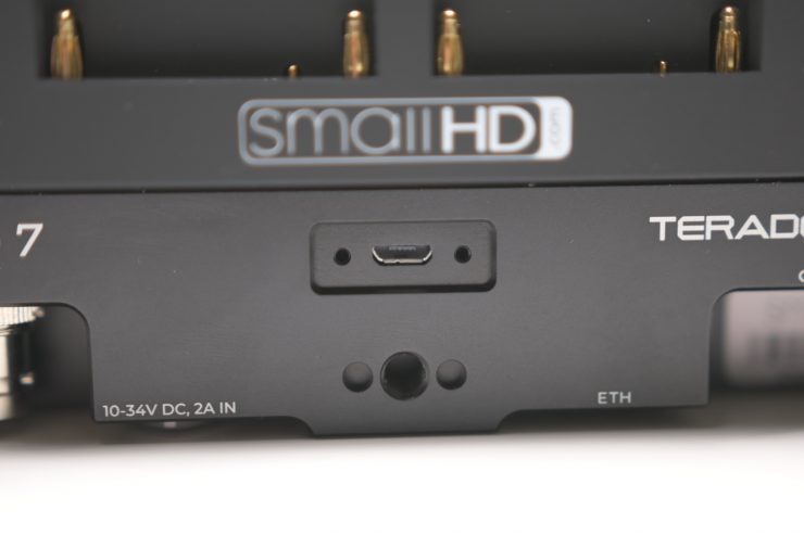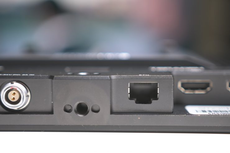 The Cine 7 500 TX is relatively easy to mount but if you are using the ethernet port for camera control you may not be able to attach some mounts or arms to the bottom of the monitor. I found that if I used a SmallRig mount and attached it to the bottom 1/4-20″ mounting point I wasn’t able to insert the ethernet cable into the monitor.