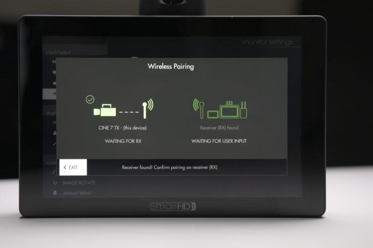 If you are going to build a wireless receiver into a monitor then it needs to be not only reliable but also trouble-free. Pairing is required with the Cine 7 otherwise, anybody with one could show up on set and steal your footage. The pairing process encrypts the transmission, which keeps everything secure and available only to those people you want to see the footage.