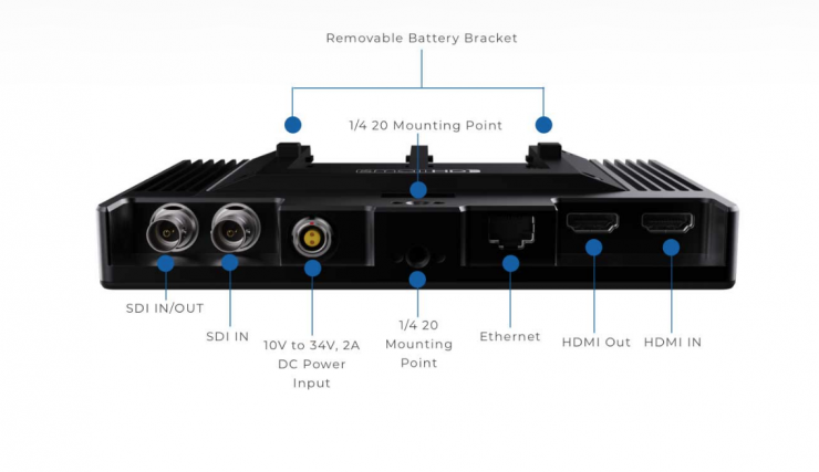 - Input: Wireless, 1 x 3G-SDI In, 1 x HDMI In, Ethernet, 10V-34V, 2A DC power input
