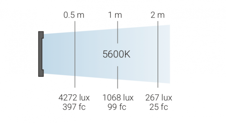 Above you can see that the Rotolight NEO 2 recorded an output of 1040 lx (96.8 fc) when used at 5600K at a distance of 1 meter.