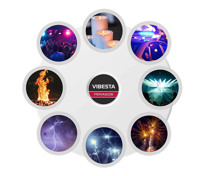 Built-in Effects- The Vibesta Peragos has built-in effects that simulate Club, Candle, Cop Car, Fire, Fireworks, Light strobe, Lightning, Paparazzi, and Television. The 304P and 304B have a basic set of effects, while the 30C has more advanced options.
