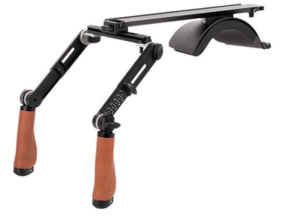 The quick release shoulder rig is based on ARRI standard dovetail and rosettes so you can mount your camera using any ARRI standard dovetail bridgeplate or baseplate.