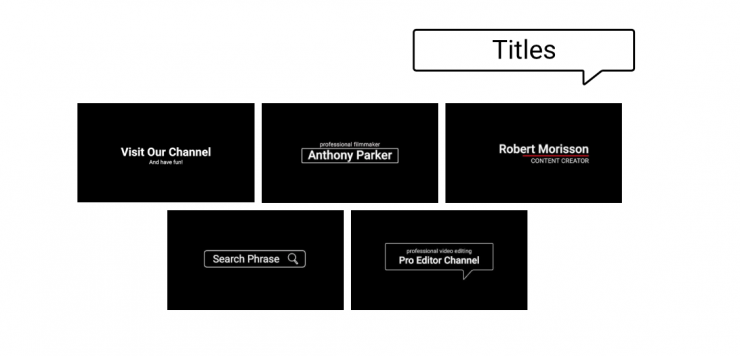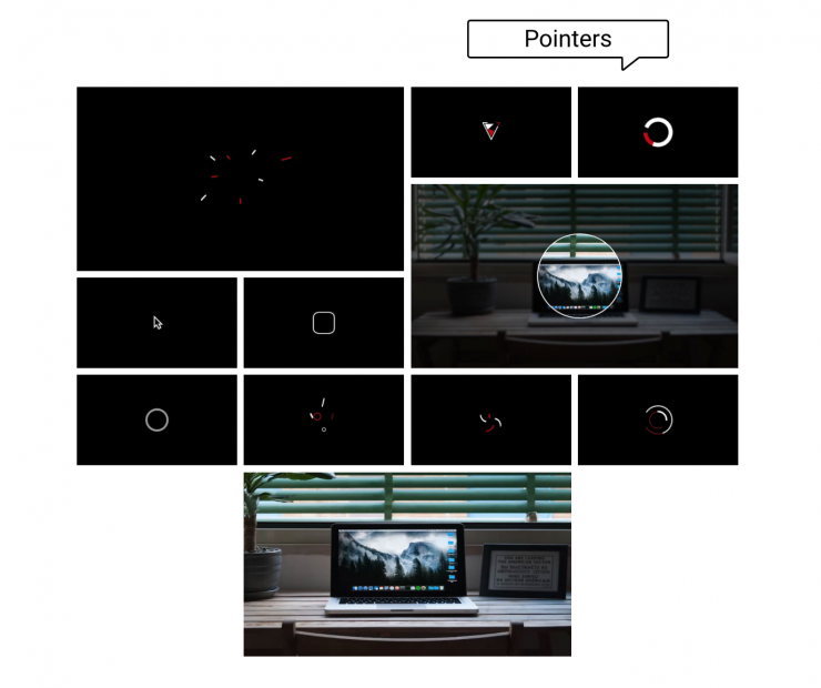 There is also pointer icons which can be used when referring to specific items in your video, titles, logo animations, backgrounds, and icons.
