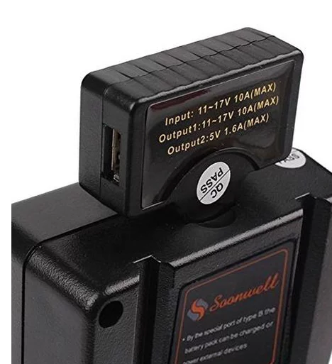 There is nothing particularly special about the Soonwell B-98V V Mount Battery. It has a 98Wh capacity, a maximum output current of 6.6A, 2x D-Tap outputs, as well as a USB output.