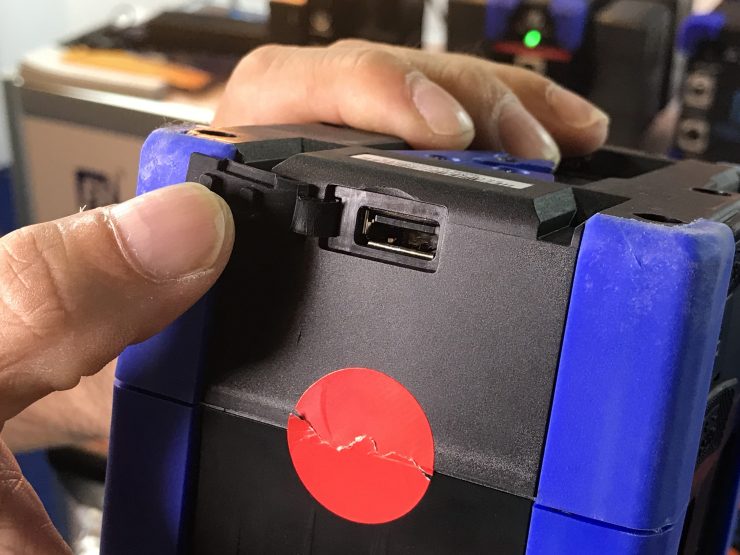 The 14.8V battery features D-Tap, USB-A, Micro USB, and USB-C ports and a handy display that shows remaining power.