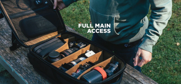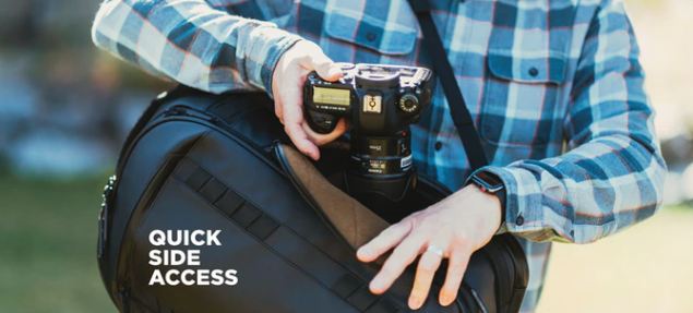 The Camera Pack offers full main access, quick side access and the ability to expand from 35 liters/2,100 cubic inches to 42 liters/2,600 cubic inches – with pockets for a tripod/bottle, laptop, tablet and other small items.