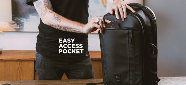 The NOMATIC Camera Pack is a carry-on size, includes quick camera access or a full wide opening and has an external laptop pocket for a 15-inch laptop and several easy-access pockets.
