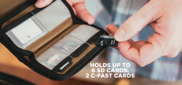 There’s also an accessory case; a protective Eva foam formed case with customizable dividers inside; a card case that holds up to six SD cards and four C fast cards with a zipper pocket; and a lens filter case, designed to hold up to six filters.