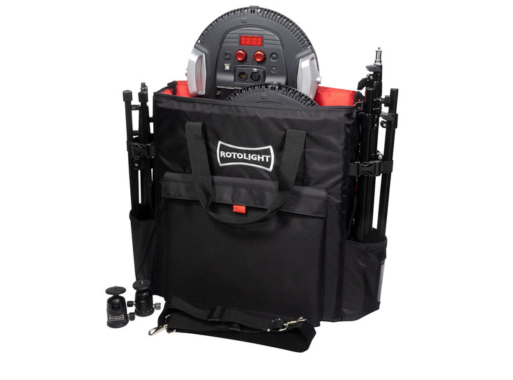 The AEOS 2-Light LED Kit from Rotolight makes for a fairly compact, power-efficient travel kit for shooters. The kit is comprised of two 3150-6300K variable-color LED fixtures with DMX that measure 11.6″ in diameter and just 0.78″ in thickness.