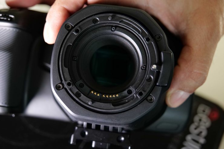 The build quality of the adapter is good. It’s nice and lightweight, and once fitted to the BMPCC 6K there is no wobble or movement.