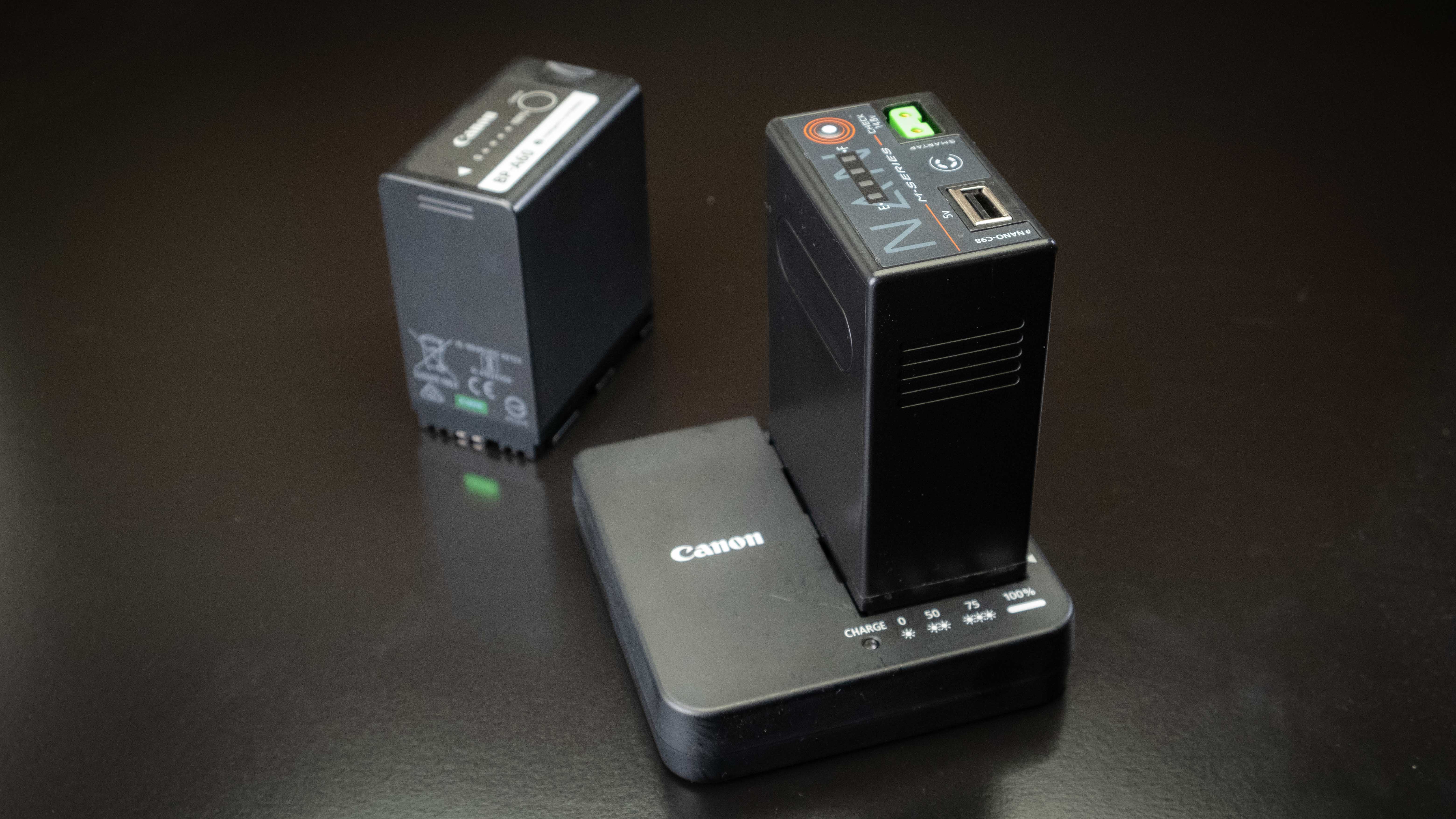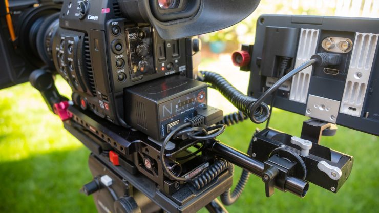Adding extra kit that requires power can be a struggle if you use smaller, lighter OEM batteries. The advantages of OEM is they are light, compact, and last a good long time. The Canon OEM BP-A60 batteries are solid. As I mentioned, if you have a kit that uses batteries or requires power like a wireless follow focus or monitor, you will either have several different types of batteries or figure out how to replace the battery the OEM option with a larger V-Lock. This requires a cage, some rails, or baseplate to achieve, and it could get messy really fast.