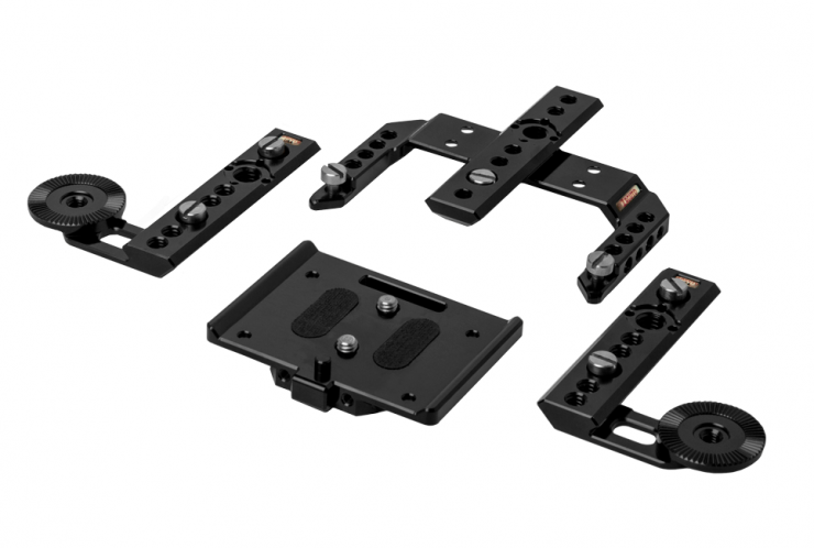The Top Plate attaches to the camera using a ¼ 20” screw and then connects to each Side Plate with a ¼ 20” screw. It has a built-in Z-Rail, ¼ 20” screw holes and ARRI 3/8″ accessory mount for attaching accessories. Each Side Plate has a built-in Z-Rail, M6 Rosette and accepts any ARRI 3/8″ accessory mount as well. The Bottom Plate attaches to the Z CAM cameras with two ¼ 20” screws and a locating pin. The Bottom Plate is Zacuto Polaris compatible (and Arca-Swiss compatible).