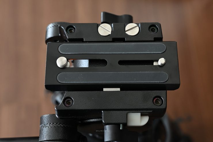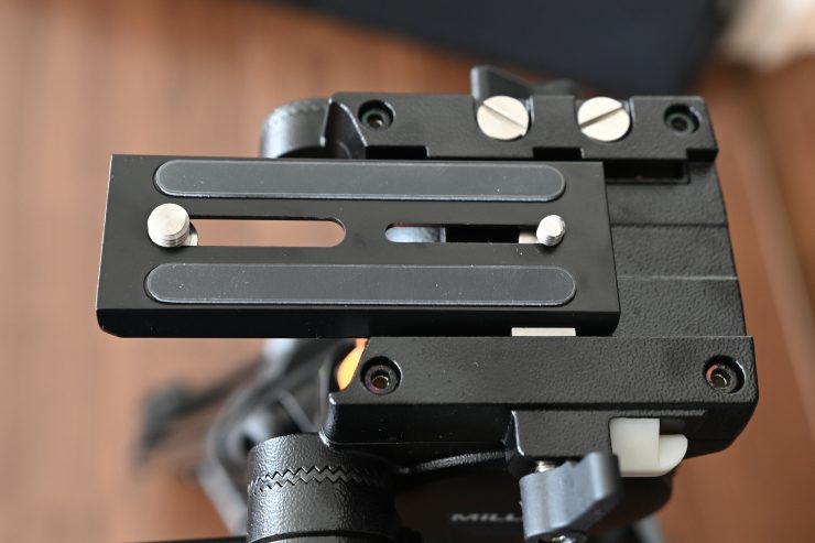 A lot of Miller tripods feature a sideload platform. While they aren’t all the same, the concept is. The CX6 head feature a quick release sideload platform. This is a nice feature to have and it allows you quickly put on or take off a camera package.