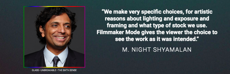 While Filmmaker Mode is a step in the right direction, it is only going to be initially available in new TVs from Panasonic, LG, and VIZIO. Whether other TV manufacturers jump on board or older TVs that can be firmware upgraded will get the Filmmaker Mode is still unknown.