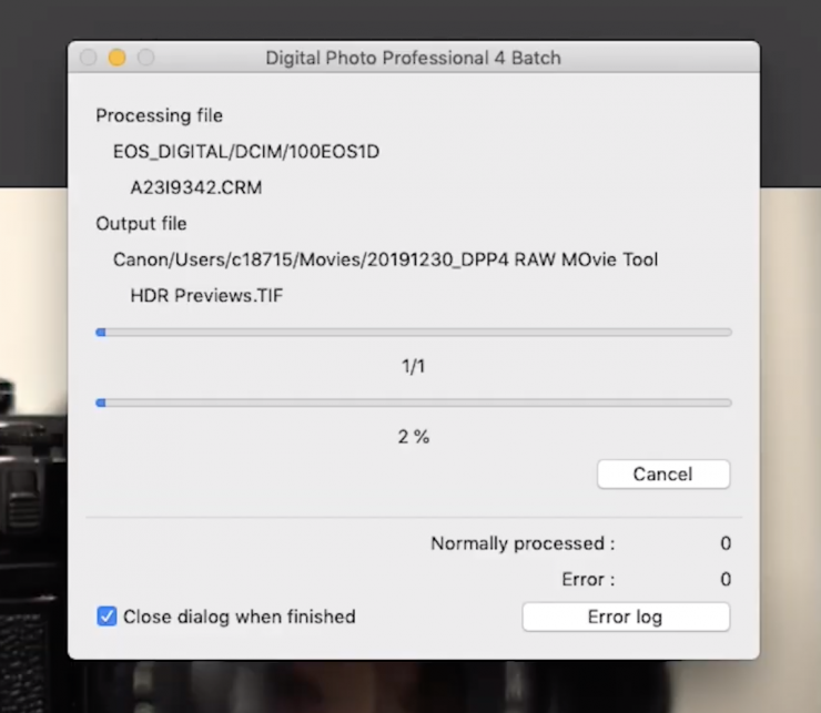 To process the RAW movie files you have to use Canon’s Digital Photo Professional 4 Software. Here, you can make adjustments and then export your clips as image sequences. It looks as if there will be NLE Plugins and some sort of dedicated Canon Cinema RAW software as well.