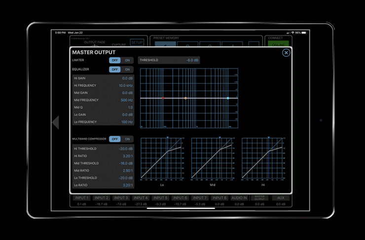 The dedicated V-8HD remote control app turns an iPad into an efficient touch interface for the V-8HD. Run essential switching functions, mix audio with virtual faders, change settings and effect parameters quickly, and create up to eight custom scenes for fast, efficient setup changes.