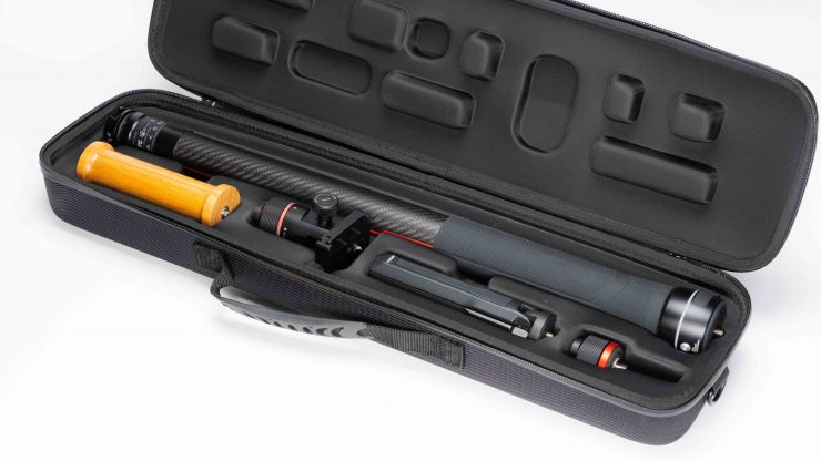 The Slypod comes with a semi-hard case for storage and transport. Included is a nice wood handle to make it longer and a little easier to hold as well as a set of feet to use it as a Monopod. Yeah, it’s a Monopod as well!