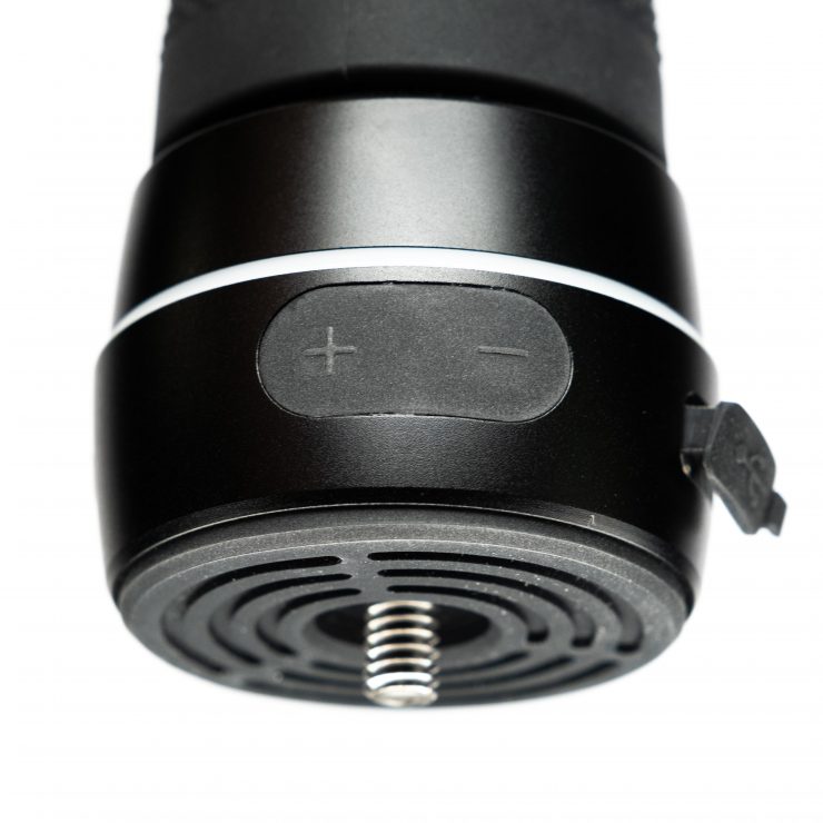On the other side is a + and – button. This controls the speed of the Slypod while extending. To put the Slypod in loop mode hold all three buttons down at the same time.