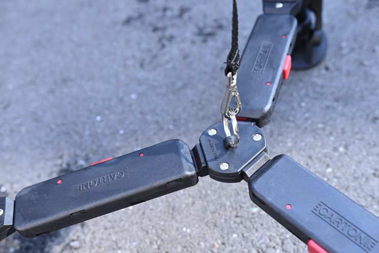 The Spreader Cord allows you to pull the cord and fold the tripod in an instant. You can even do this when the dual stage spreader is expanded. This is probably my favorite feature of the Red Lock tripod. It is a simple concept, but it works well and saves you a lot of time.