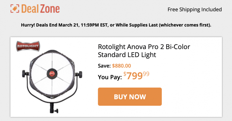 For the next 48 hours, B&H has the Rotolight Anova Pro 2 on sale for $799.99 USD, which is a saving of $880 USD on the normal list price of $1,679.99 USD.