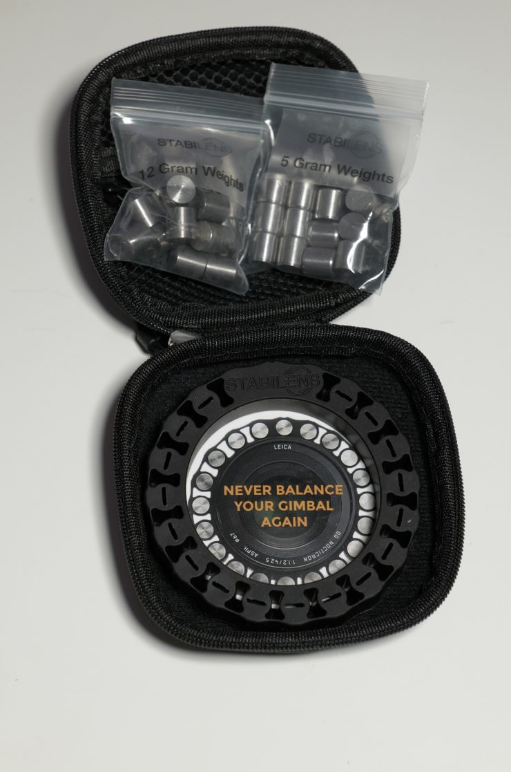 Once you have done your normal balancing, you will add the StabiLens to any lighter lens you want to use on your camera and gimbal combination.
