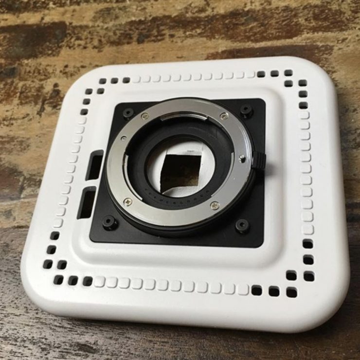 The camera measures just 110 x 110 x 110mm, and it weighs in at 900g. It is made out of CNC Milled Aluminium in a gloss white finish. It is designed and assembled in London, UK.