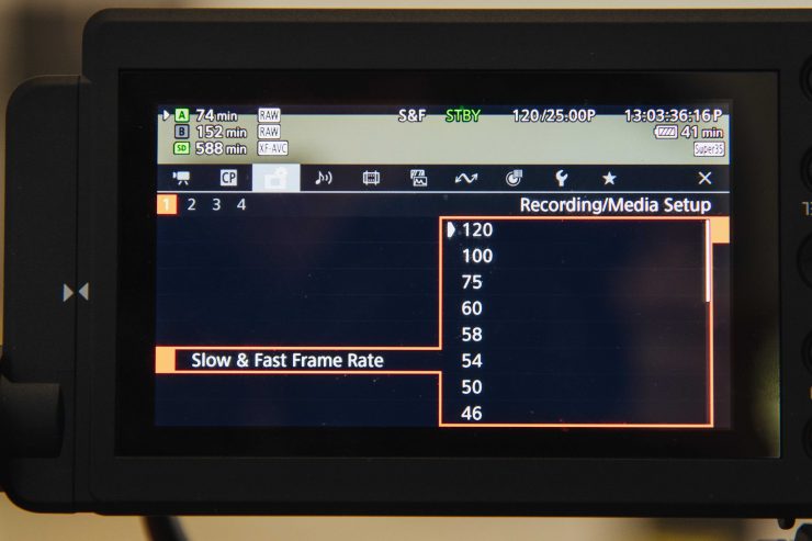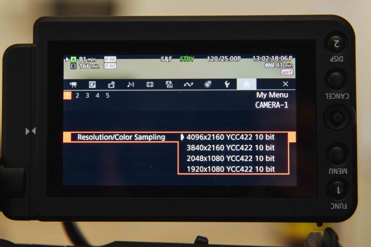 Now, there is a catch with this Dual gain Output system. It doesn’t work when you are shooting in frame rates above 60p in S35 4K. However, it does work when you are shooting in 2K Super 16mm Crop mode up to 112fps. This is not surprising because the amount of processing power to deal with two readouts at high resolutions and high frame rates would put a proportionally bigger load on the system. With a power draw of just 31W Canon probably had to make a trade-off with how the Dual Gain Output works in the camera. There is a reason ARRI cameras have a high power consumption!