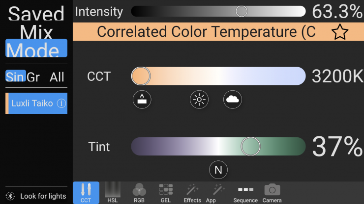 Even if you don’t need the RGB color modes, the white light output by the Timpani can be adjusted from 2800K to 10,000K in CCT mode and it has a claimed CRI of 95 and TLCI of 97 at most color temperature settings. The Dimming and color temperature can be adjusted in fine increments, 50K for color temperature, and 1% for dimming.