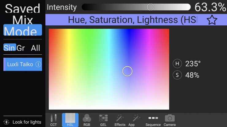 It is pretty easy to make adjustments and changes on the Taiko, and I like how there is a nice big virtual color pallette displayed when you are in the RGB Mode. This makes selecting the color you are are looking to create a whole lot easier.