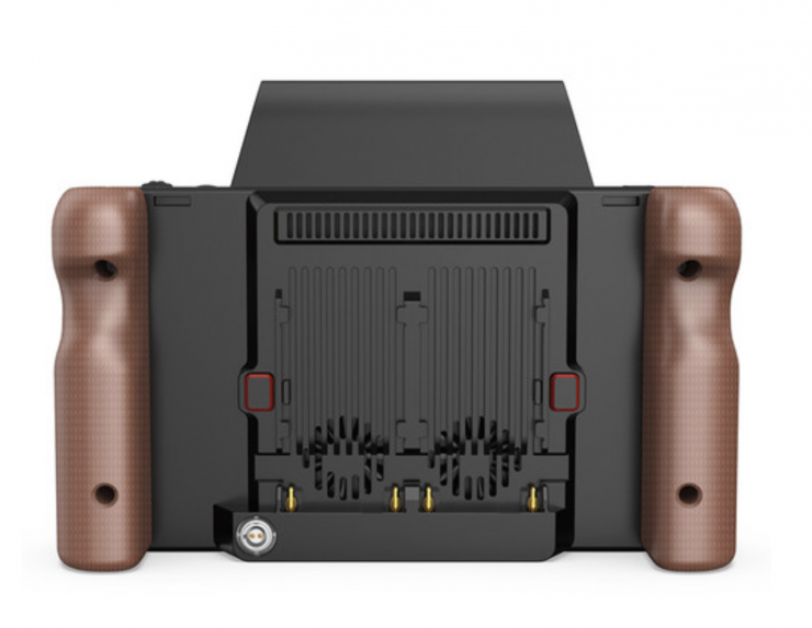 - Neck strap, D-Tap cable, sun hood, and two wooden handles are included