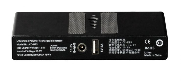The CCTECH battery weighs in at 450g (15.87 oz). It features multiple 3/8″ and 1/4-20″ mounting holes. The main body is made out of aerospace aluminum alloy. CCTECH claims that the battery uses a fully sealed waterproof structure