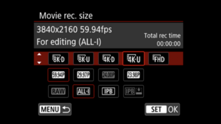 - 4K DCI/UHD at up to 120p 4:2:2 10 bit Canon Log full width of the sensor